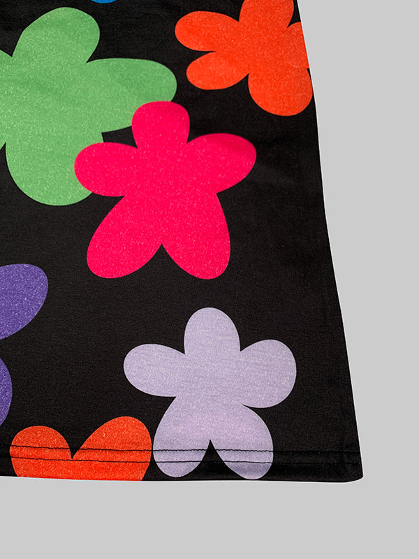 Long Sleeves Asymmetric Floral Round-Neck Maxi Dresses