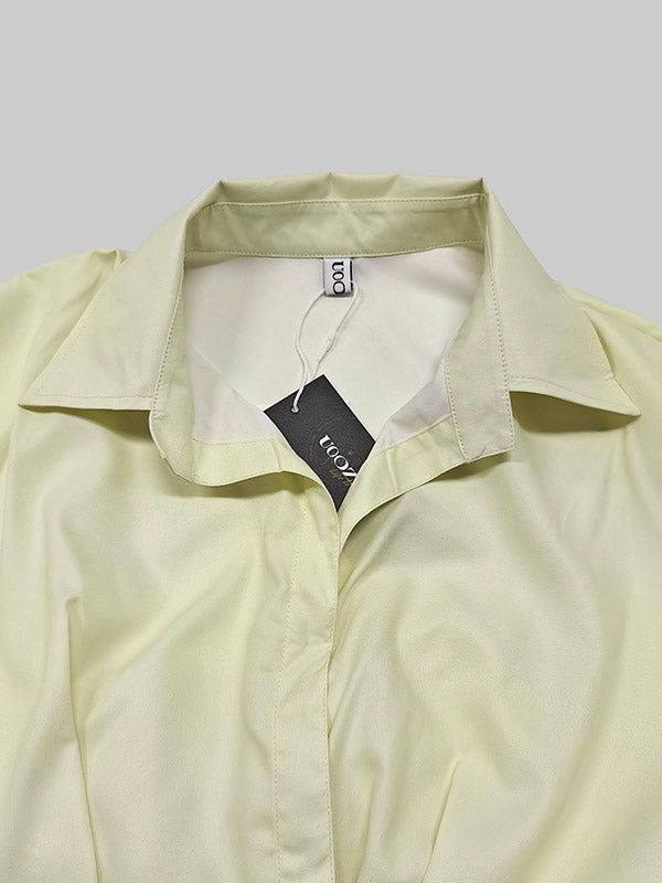 Long Sleeves Loose Floral Printed Pleated Split-Joint Tied Waist Lapel Midi Dresses Shirt Dress