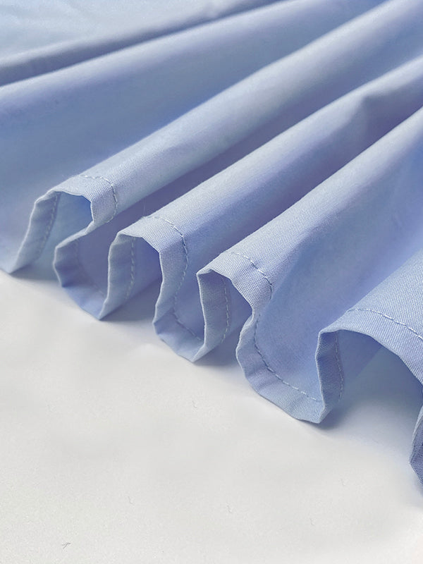 Loose Puff Sleeves Pleated Solid Color Split-Joint Lapel Maxi Dresses Shirt Dress
