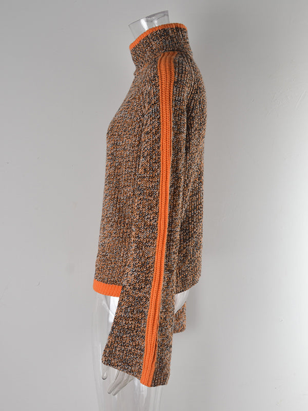 This loose-fit half turtleneck sweater is accented with bold contrast trim, bringing a stylish twist to classic knitwear. Perfect for layering or wearing solo, it balances warmth and trend effortlessly.