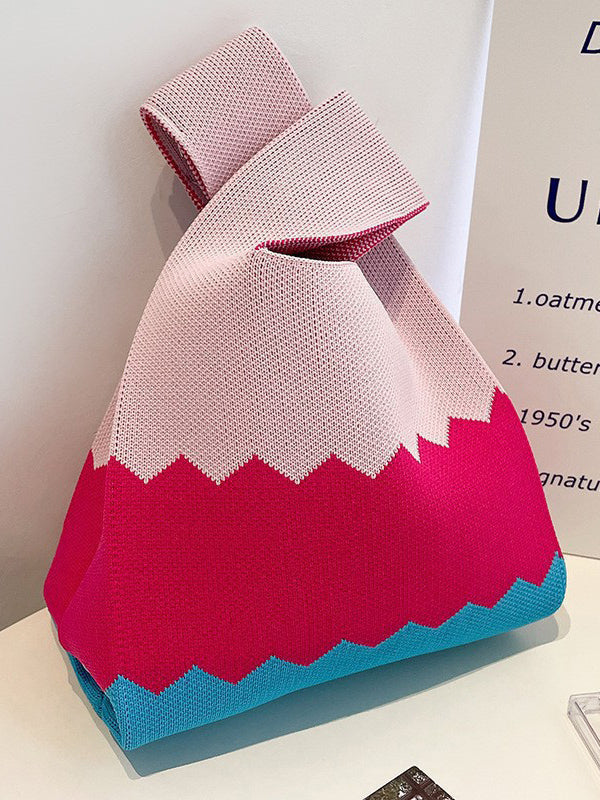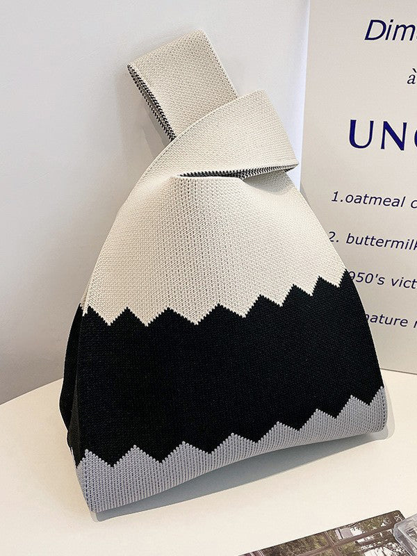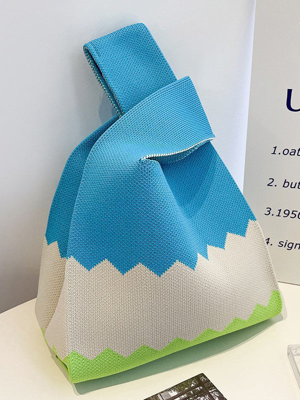This soft woven handbag stands out with its cheerful contrast colour blocking and knotted top handle. Lightweight yet structured, it adds a punch of personality to any casual outfit.
