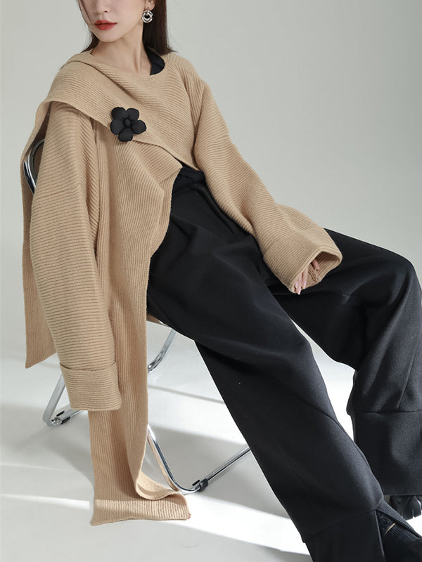 Designed with a graceful high-low hem and an asymmetric cut, this cardigan stands out with its statement three-dimensional floral detail. The round-neck silhouette and flowing drape bring modern sophistication to a timeless layering piece.