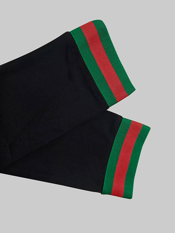 This figure-hugging midi dress features bold vertical stripes and a plunging V-neckline for a refined silhouette. With tailored long sleeves and a body-sculpting fit, it's your go-to for standout sophistication.