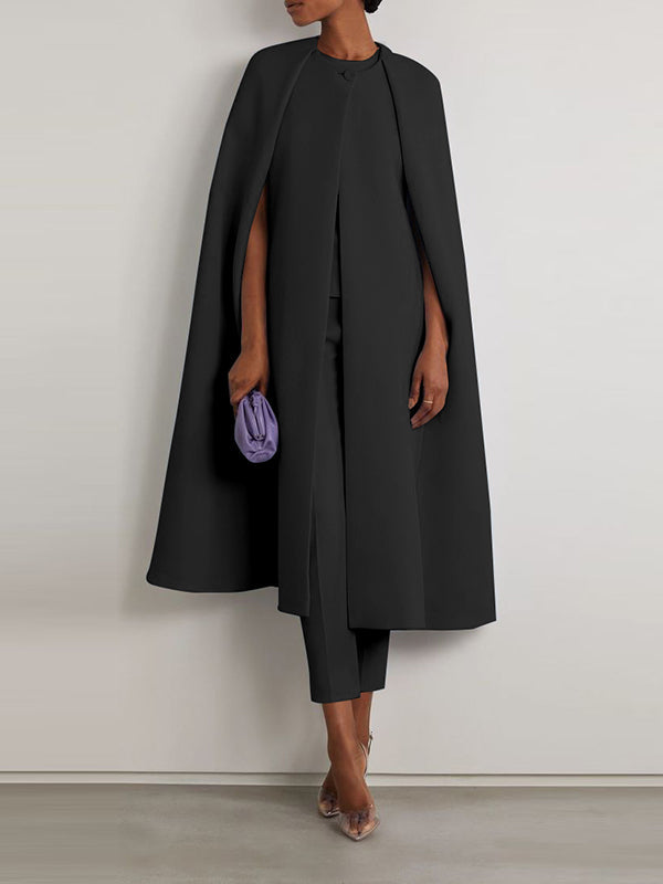 Cap Sleeve Solid Color Round-Neck Cape Pants Pants Set Two Pieces Set