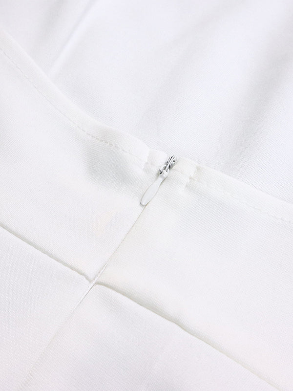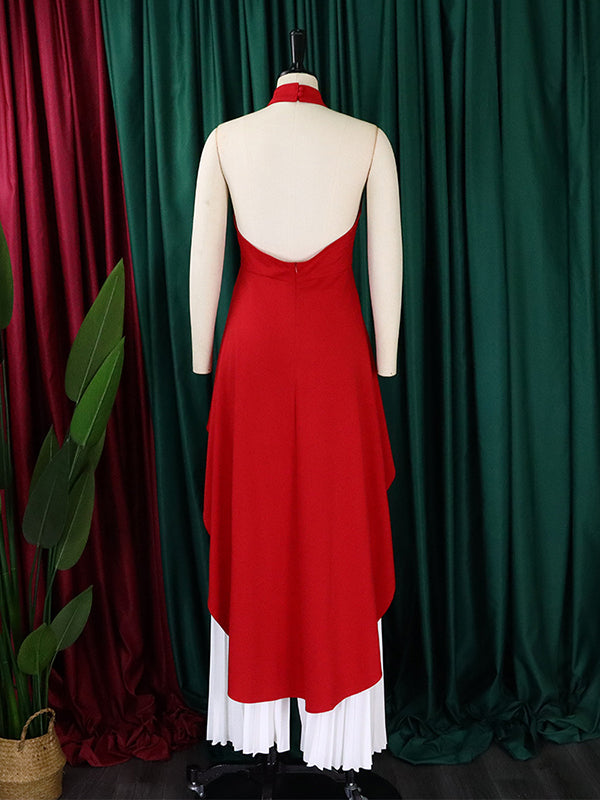 Loose Backless Lacy Solid Color Halter-Neck Vest Top + High-Low Pants