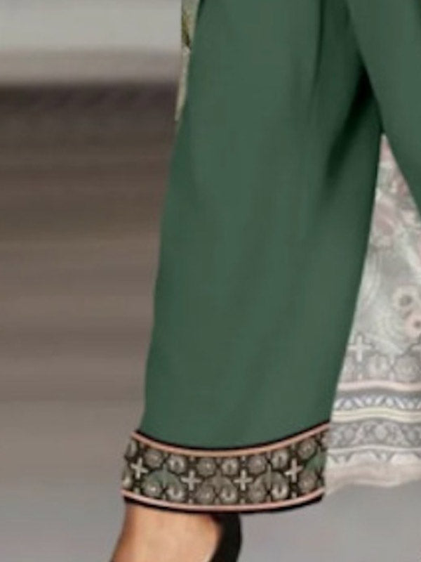 Long Sleeves Loose Flower Print Split-Side Round-Neck T-Shirt Tops&Pants Two Pieces Set