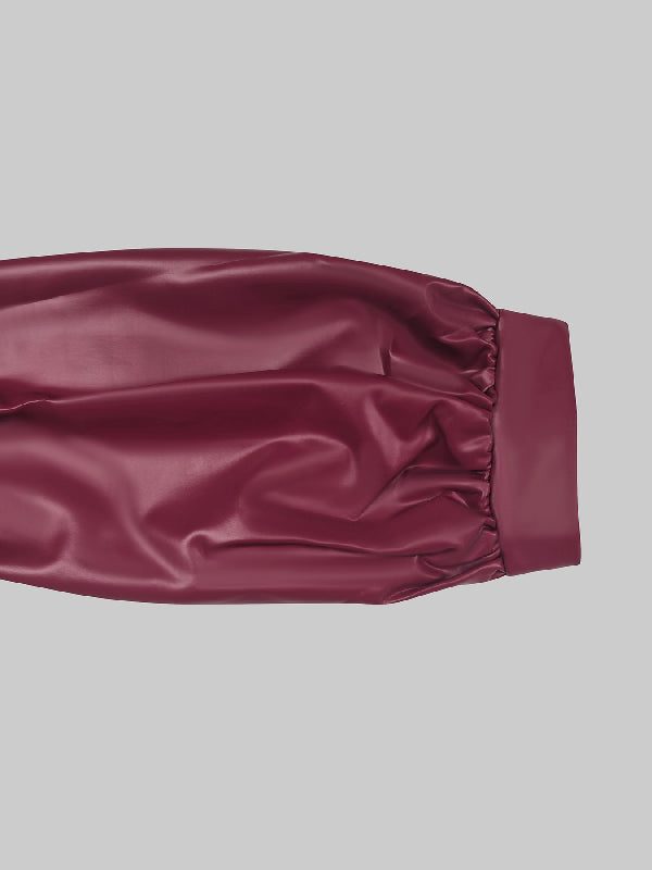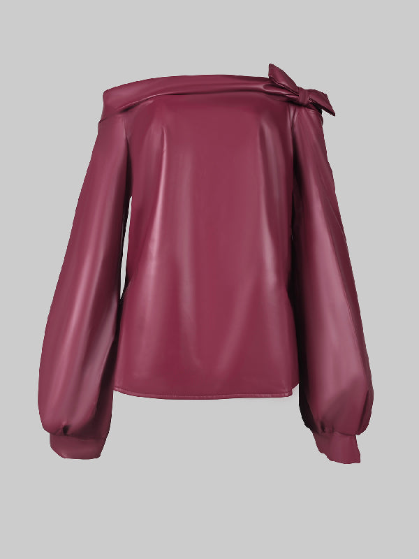 Long Sleeves Puff Sleeves Asymmetric Knot Solid Color Off-The-Shoulder Shirts Top + Pants Bottom Two Pieces Set