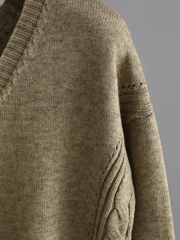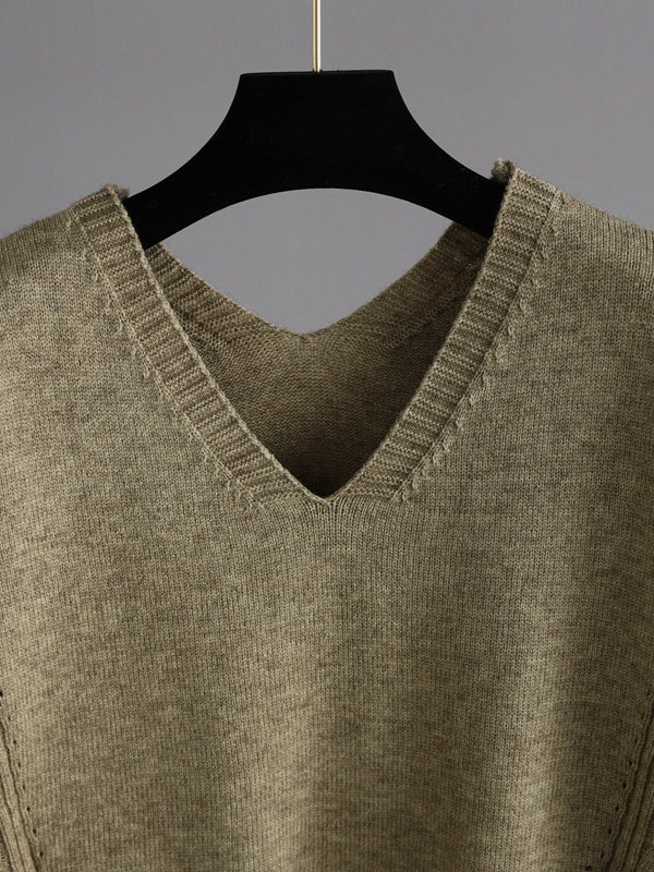 Stylish Loose Long Sleeves Solid Color V-Neck Sweater Tops& Wide Leg P