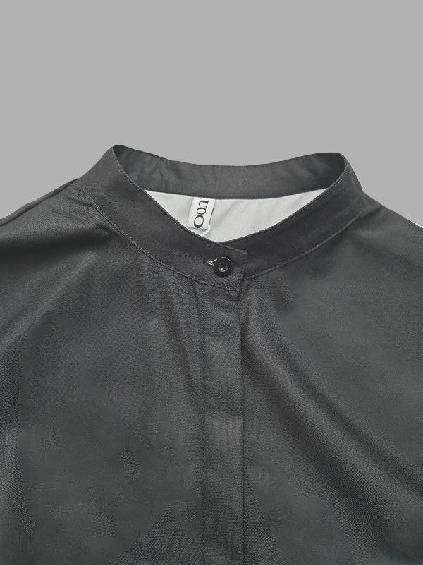 Long Sleeves Loose Floral Floral Printed Pleated Split-Joint Stand Col