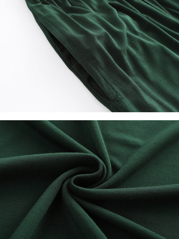 This V-neck lounge set pairs a relaxed short-sleeve top with flowy drawstring pants for an elegant yet easy fit. Perfect for cozy nights in or casual mornings.