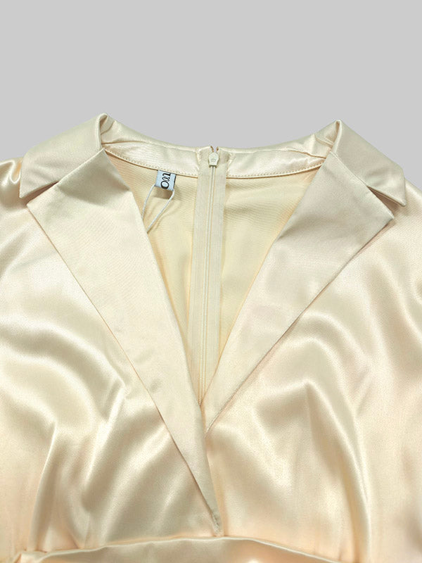 A-Line High Waisted Pleated Solid Color V-Neck Maxi Dresses